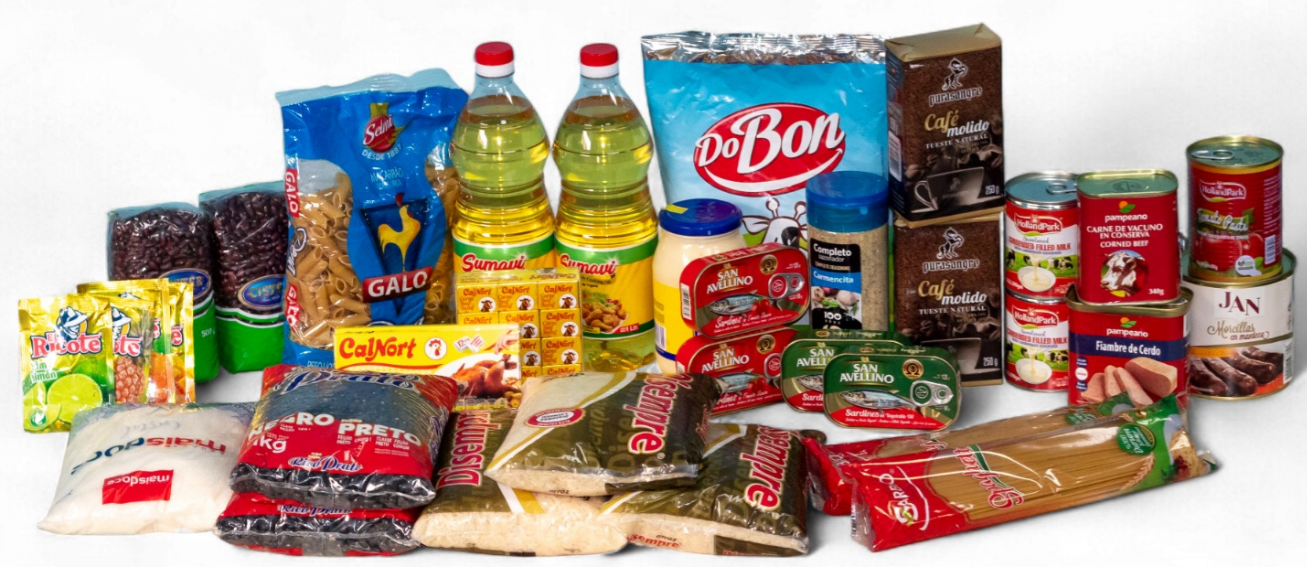 3 KG Arroz Blanco grano largo Disempre 2 KG Frijol Negro Bolsa 1kg Rico Prato 2 Alubia Roja Bolsa 500 g Cister 1 KG Azúcar Blanca Maisdoce 1 U Pasta de Tomate 400 g Abre Fácil HollandPark 1 U Pasta Pena Galo 500 g 2 U Pasta espagueti Sarbio 500 g 2 Lt Aceite Sumavi 2 U Leche Condensada Lata 390 g HollandPark 1 U Preparado de leche en Polvo entera Dobon 1 kg caja x 10 unid 1 U Mayonesa 500 ml HollandPark 1 U Sazonador Completo 335 g Bote Carmencita 2 U Sardinas en aceite 2 U Sardinas en tomate 1 U Pork Luncheon Meat Lata 320 g Pampeano 1 U Corned Beef Lata 340 g Pampeano 1 U Morcilla con manteca 625 g JAN 4 U Refresco en polvo 2 Lt 2 U Café Molido Natural 250 g Purasangre 1 U Caldo de Carne pastilla x 10 g (estuche 36 pastillas) Calnort 1 U Caldo de Pollo pastilla x 10 g (estuche 12 pastillas) Calnort 1 U Caldo Sabor Jamón Pastilla x 10 g (Estuche 12 pastillas) Calnort