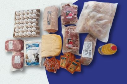Paquete de carne de res troceada 1 kg Paquete de bistec de res 1 kg Paquete pechuga entera deshuesada 2 kg Paquete muslo o contramuslo de pollo 10 lb Solomillo de cerdo 2.5 lb Lomo de cerdo sin hueso 4 lb Cartón de huevo (30 unidades) Queso blanco criollo 4 lb Sazón Goya [x10] Paquete de refresco de naranja [x10] Aceite 1 L Leche en polvo entera 1 kg