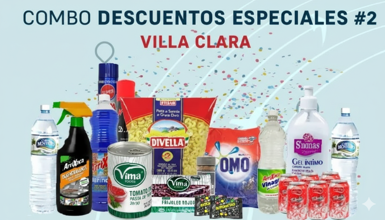 1 Frijol colorado Vima (500 g) 1 Garbanzos con Chorizo VIMA (451 g) 1 Pasta de Tomate Vima Foods (400 g) 1 Pasta Chifferini Rigate DIVELLA (500 g) 1 Maíz dulce Coaliment (425 g) 1 Molinillos Pimienta negra Carmencita (50 g) 1 Lavavajilla Concentrado ARRIXACA (750 ml) 1 Fregasuelos ARRIXACA (1.5 L) 1 Insecticida ARRIXACA (750 ml) 1 Detergente en polvo OMO (900 g) 1 Vinagre de Limpieza ARRIXACA (1 L) 1 Desengrasante Pistola Arrixaca (750 ml) 1 Gel íntimo S´nonas (500 ml) 8 Refresco Ciego Montero Varios Sabores (355 ml) 2 Agua Natural (1.5 L)