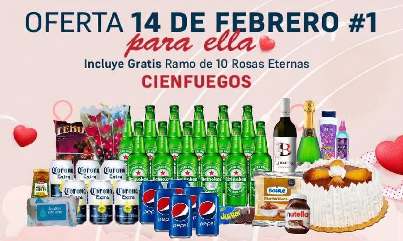 1 Cake Capuccino 1 Nutella Ferrero (371 g) 1 Dulce de leche Manjar blanco Bonlé (500 g) 12 Cerveza Heineken (330 ml) 6 Cerveza Corona (330 ml) 1 Vino Tinto La Baronne (750 ml) 1 Sidra de Manzana 6 Refresco de cola PEPSI (355 ml) 1 Galletas Junior de chocolate (320 g) 1 Aceitunas enteras con pimiento Kurtz (163 g) 1 Bombones LEBOM rellenos con ron (260 g) 1 Gel de Baño (750 ml) 1 Toallitas húmedas Baby Bain (80 unidades) 1 Perfume Dubai essences FOR WOMAN (100 ml) 1 Colonia agua de Rosa Bonabel (300 ml)