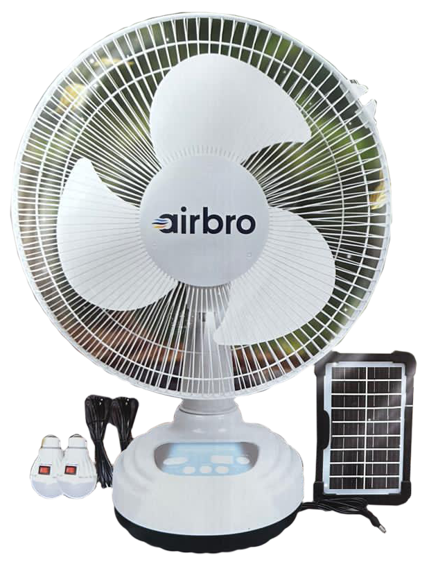 "Modelo: FSA-12 Fuente de alimentación: CA 110-240V, 50Hz – Listo para uso global Ventilador: Ventilador oscilante de 12” con 2 velocidades ajustables para máxima comodidad Motor: Potente motor de cobre puro para un rendimiento duradero Alimentación: Compatible con AC/DC – se puede usar con corriente o con la batería Luz nocturna: Luz LED súper brillante de 6 piezas para iluminar cualquier espacio Batería: Batería recargable sellada de plomo-ácido de 6V 4.5Ah Bombillos: 6V, 3W x 2 – eficientes y brillantes Panel solar: Panel solar ecológico de 9V, 3W para recargar sobre la marcha Entrada: CC 9V para carga solar fácil Banco de energía: Banco de energía USB incorporado para recargar tu teléfono y otros dispositivos Indicadores: Luces LED de encendido y carga que te avisan cuándo está todo listo Base: Base resistente y estable – ideal para uso interior y exterior Funcionalidad simultánea: Puedes usar el ventilador, luces LED y cargar dispositivos al mismo tiempo, ya sea con corriente o batería Voltaje: 110V-240V / 50Hz Potencia: 18W Peso bruto: 3.0 kg Dimensiones: 33.8 x 17 x 34.5 cm Pais de origen: China Garantia: 1 Mes"