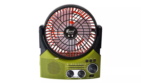 Compatible con panel solar de 5V Ventilador de 6 pulgadas Función Bluetooth (B.T. Function) Antena giratoria de 360° Receptor de alta sensibilidad Altavoz potente Entrada auxiliar (AUX IN Jack) Entrada de carga DC 5V (jack para panel solar de 5V) Reproductor de música: USB / TF (MP3)
